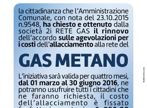 L'Amministrazione Comunale ha ottenuto il rinnovo dell'accordo sulle agevolazione per il costo di allacciamento alla rete gas metano.