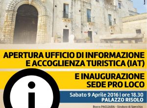 APERTURA UFFICIO INFORMAZIONE E ACCOGLIENZA TURISTICA E INAUGURAZIONE NUOVA SEDE PRO LOCO - SABATO 9 APRILE ALLE ORE 18.30 PRESSO PALAZZO RISOLO