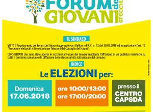ELEZIONI DEL CONSIGLIO DEL FORUM DEI GIOVANI - DOMENICA 17 GIUGNO DALLE ORE 10 ALLE ORE 13 E DALLE ORE 17 ALLE ORE 19 PRESSO IL CENTRO CAPSDA