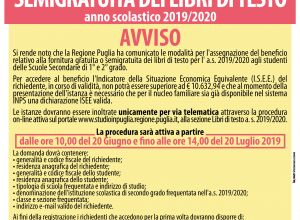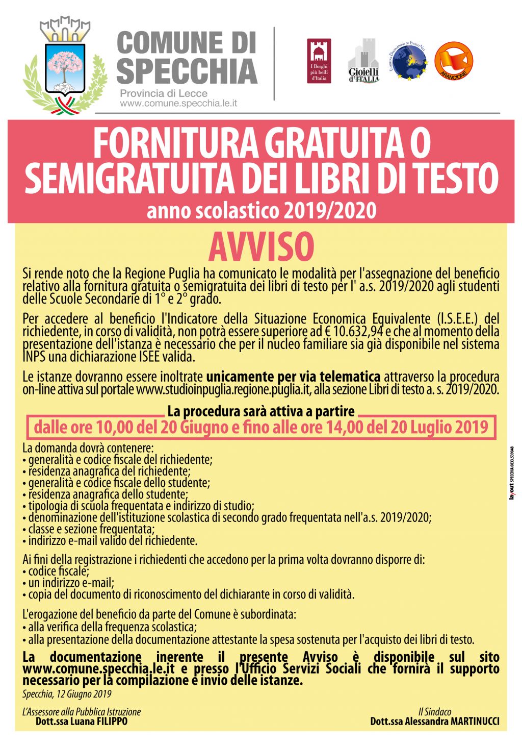 FORNITURA GRATUITA O SEMIGRATUITA DEI LIBRI DI TESTO - ANNO SCOLASTICO 2019-2020