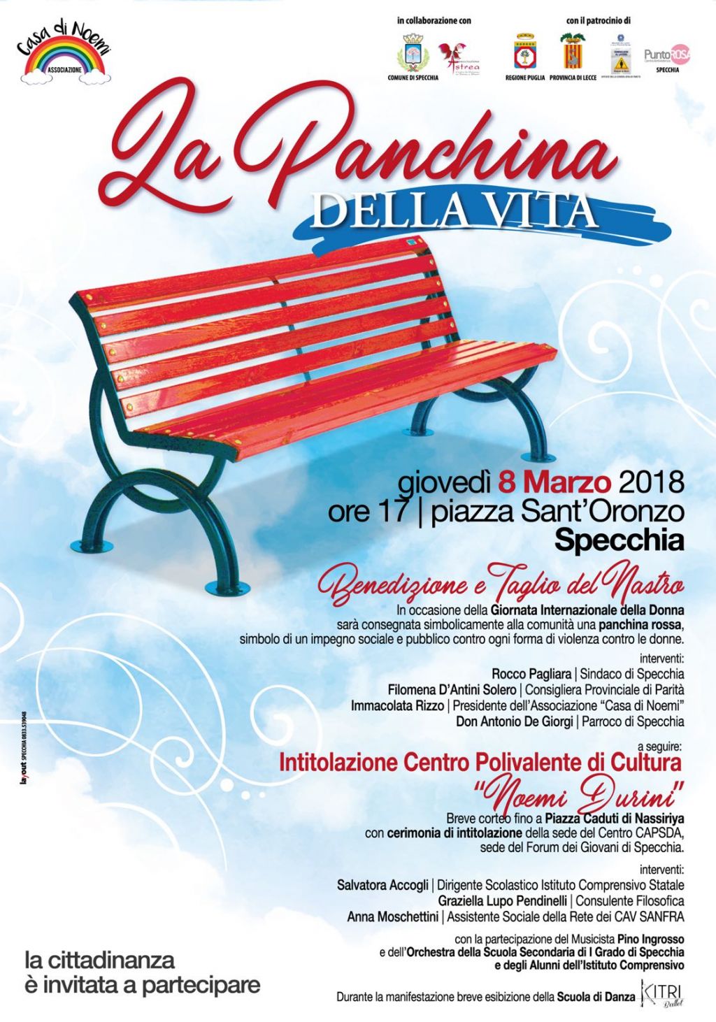 MANIFESTAZIONE LA PANCHINA DELLA VITA - 08 MARZO 2018