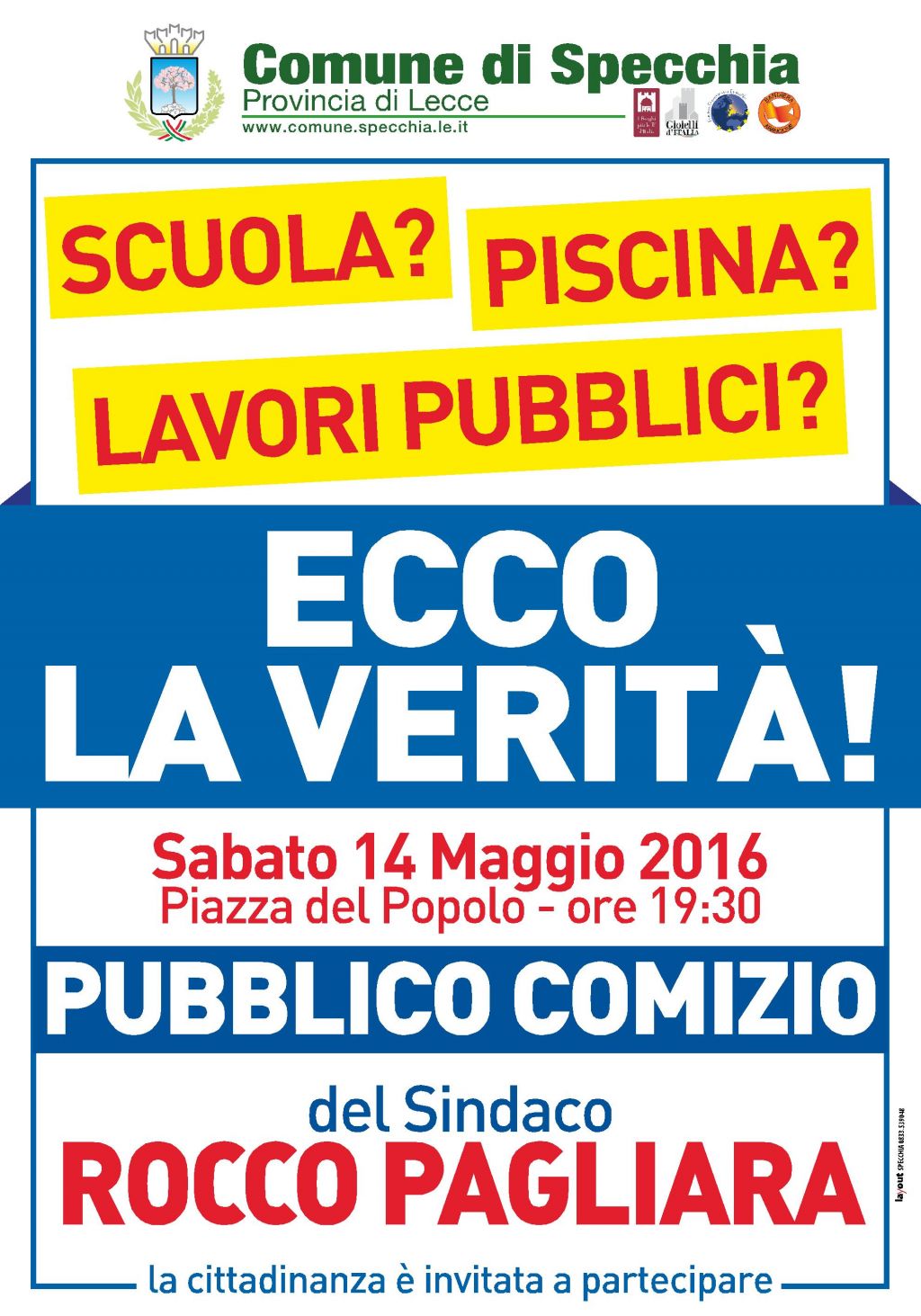 SABATO 14 MAGGIO IN PIAZZA DEL POPOLO ALLE ORE 19.30 PUBBLICO COMIZIO DEL SINDACO ROCCO PAGLIARA