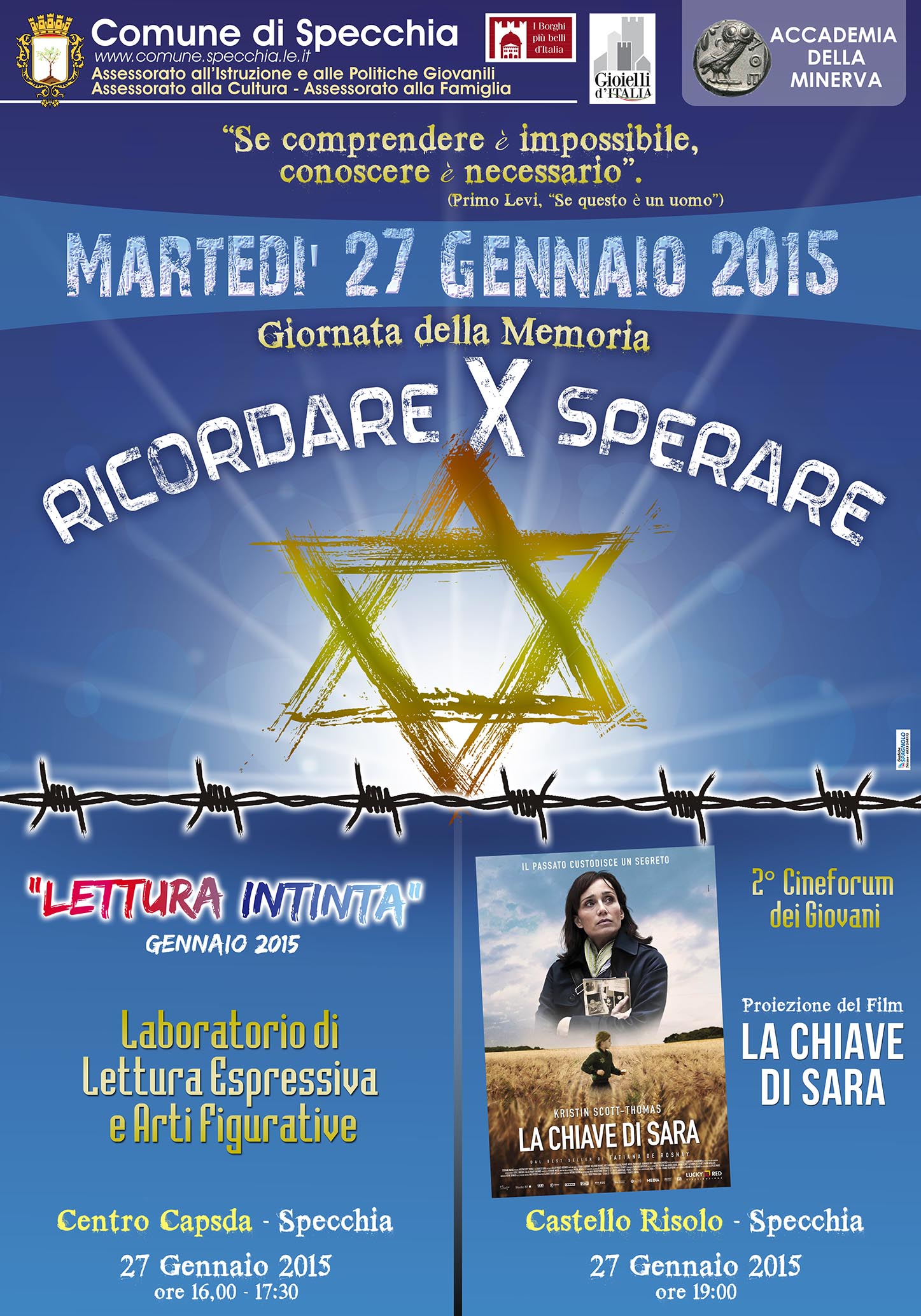 "SE COMPRENDERE E' IMPOSSIBILE, CONOSCERE E' NECESSARIO" Martedi 27 Gennaio 2015 - GIORNATA DELLA MEMORIA